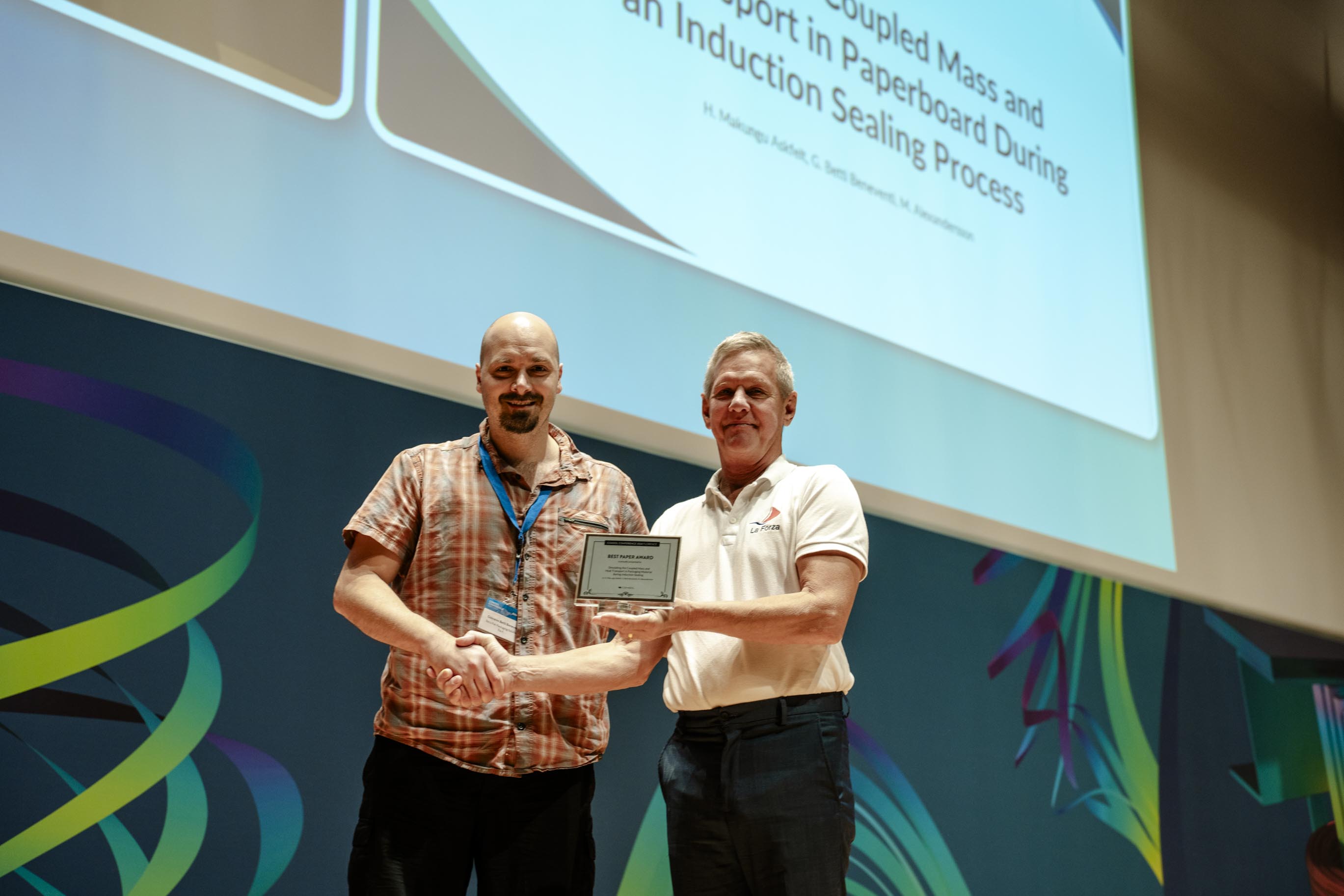 The final Best Paper award went to Henrik Askfelt, Giovanni Betti Beneventi, and Marcus Alexandersson from Tetra Pak Packaging Solutions for their paper titled “Simulating the Coupled Mass and Heat Transport in Paperboard during an Induction Sealing Process”. In this paper, they share a multiphysics model that can be used to study how liquid food packaging material (PM) behaves during induction heating. The model incorporates coupled mass and heat transport and electromagnetic induction, and the team’s paper breaks down the physics phenomena occurring in the aluminum foil, paperboard, and polymer layers.